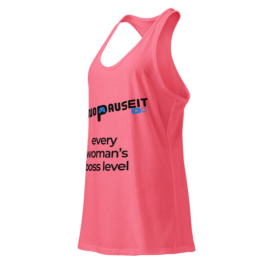 Women’s fitted racerback tank top: MenopauseIt Boss Level